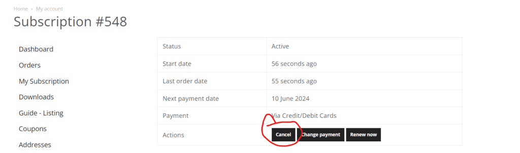 Yes you always have the right to cancel the subscription. You can easily do this by signing in to your account at: https://lisbontraveltips.com/my-account. If you look at left menu, you can click at subscriptions -> and click on cancel.