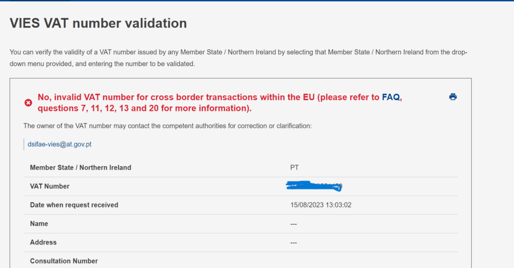 Should the VAT number still be invalid for cross-border transactions within the EU, we recommend contacting your local tax authority to address and resolve this issue.